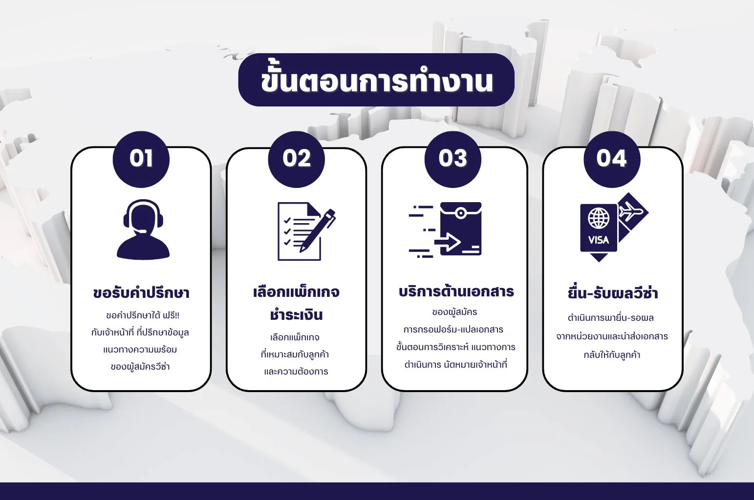 - ลูกค้าชำระ 50% ส่วนที่เหลือ (ถ้ามี) ก่อนวันยื่นลูกค้าซ้อมสัมภาษณ์