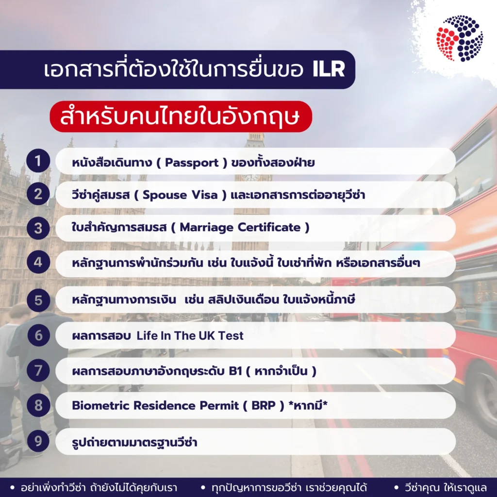 การยื่นขอถิ่นที่อยู่ถาวร (Indefinite Leave to Remain ILR) สำหรับคนไทย ที่ได้จดทะเบียนสมรสกับชาวอังกฤษและพำนักในสหราชอาณาจักรเป็นขั้นตอนที่สำคัญในการขอสิทธิ์พำนักถาวรในสหราชอาณาจักร โดย ILR จะอนุญาตให้ผู้ที่ได้รับสามารถอาศัยอยู่ในประเทศได้โดยไม่จำกัดระยะเวลา และมีสิทธิ์ในการทำงานและเข้าถึงบริการต่างๆ ได้อย่างเต็มรูปแบบ