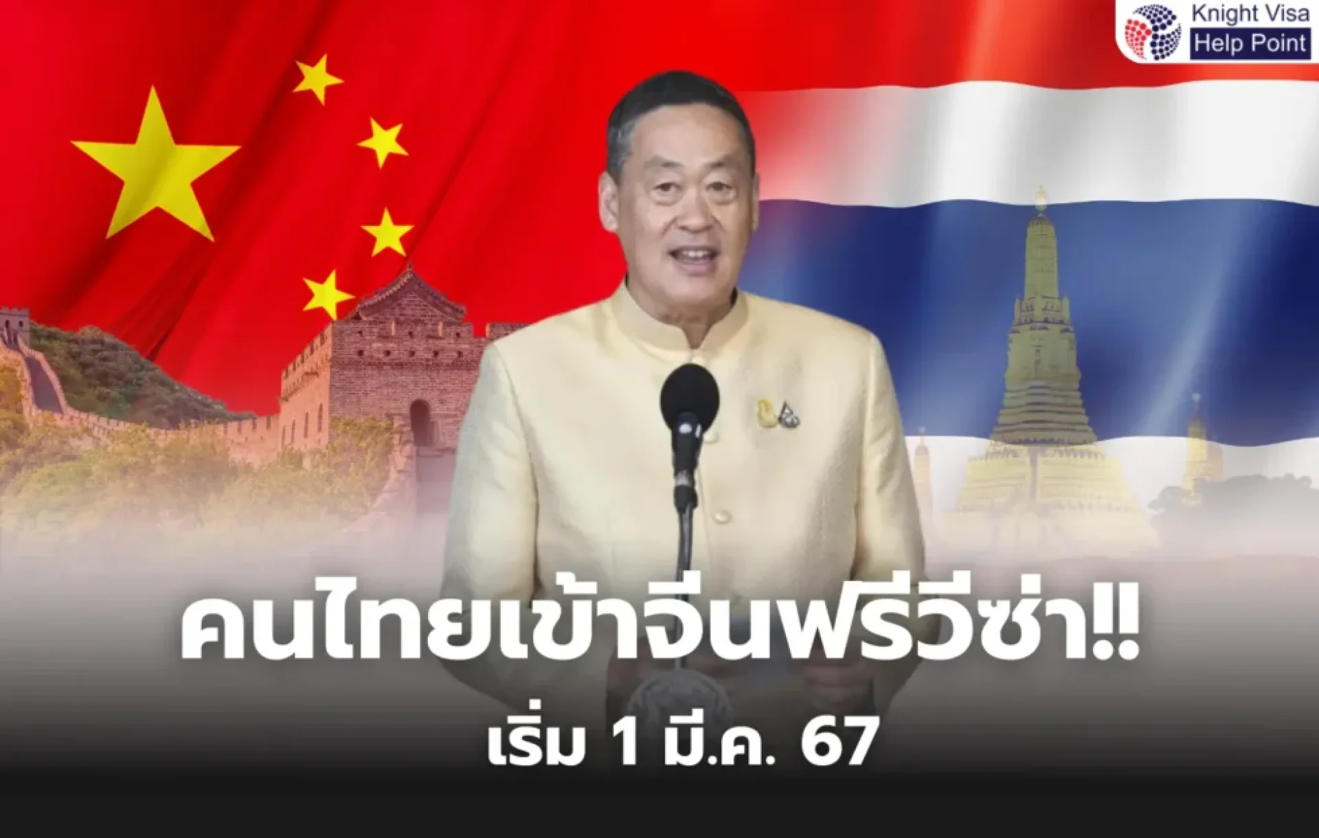 จีนเปิดฟรีวีซ่าให้นักท่องเที่ยวไทย เริ่มตั้งแต่ 1 มี.ค.67 เท่ากับว่าการเดินทางไปมาระหว่างคนทั้งสองประเทศไม่ต้องมีวีซ่าซึ่งกันและกัน